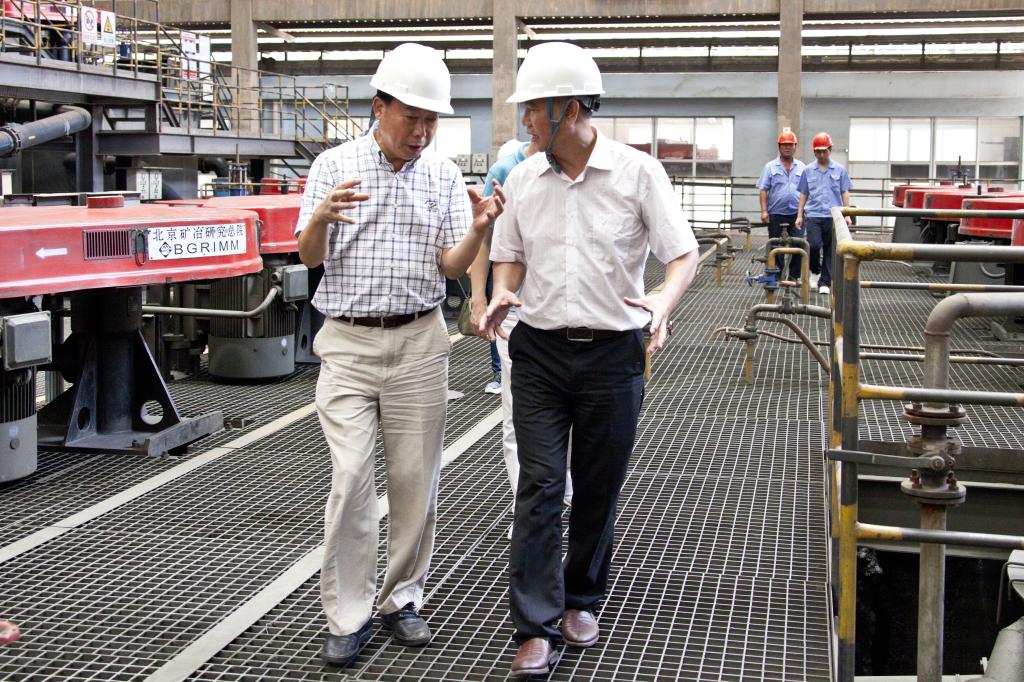 在選礦作業(yè)車間,客人們詳細(xì)了解了大屯錫礦選礦的發(fā)展歷程、生產(chǎn)規(guī)模、設(shè)備流程等情況,仔細(xì)觀察了搖床的工作原理和詢問了礦石品位等,對大屯錫礦信息化管理、精細(xì)的選礦技術(shù)及大規(guī)模的生產(chǎn)流程給予了高度評價,并就安全生產(chǎn)等工作進(jìn)行交流,提出了建設(shè)性的意見和建議。
