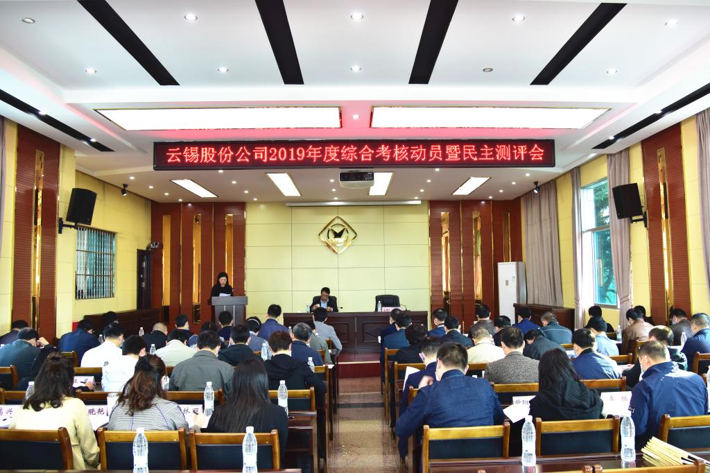 3月26日,錫業(yè)股份2019年度綜合考核動員暨民主測評會在機械(錫都實業(yè))公司五樓會議室召開,控股公司黨委書記、董事長、綜合考核組組長張濤作考核動員,錫業(yè)股份副董事長、總經(jīng)理楊奕敏主持會議。