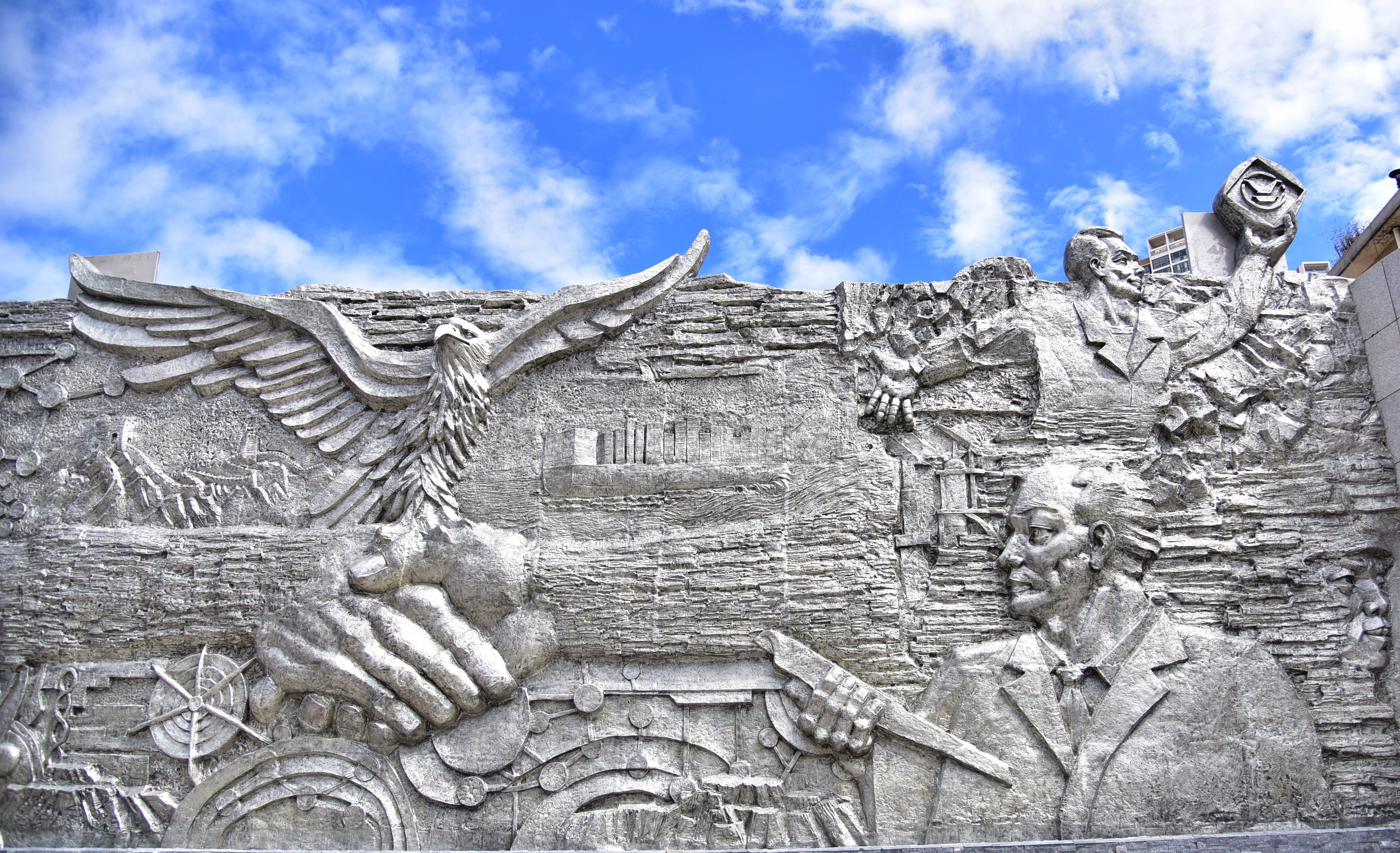 在設(shè)計方、施工方和云錫參建單位與制作人員的共同努力下,2021年10月,總長80米、平均高度5.4米的大型錫業(yè)文化主題群雕在個舊金湖東路云錫辦公大樓門口落成。