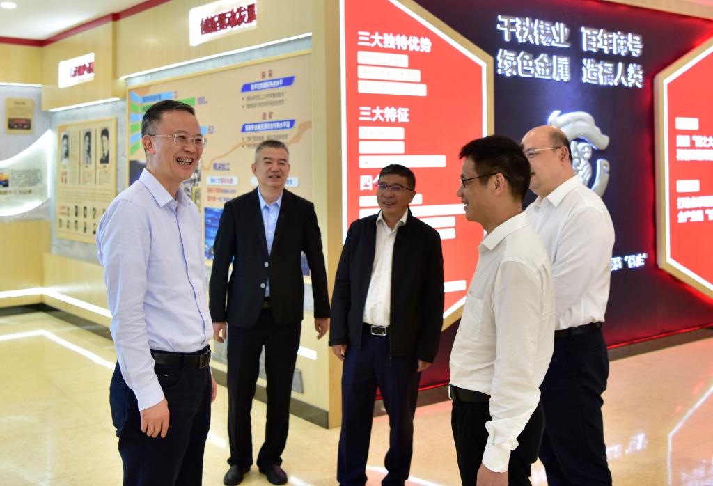 6月16日下午,廣西華錫集團股份有限公司黨委書記、董事長蔡勇一行到訪云錫??毓晒军h委書記、董事長胡均在昆明總部一樓展廳接見來賓。