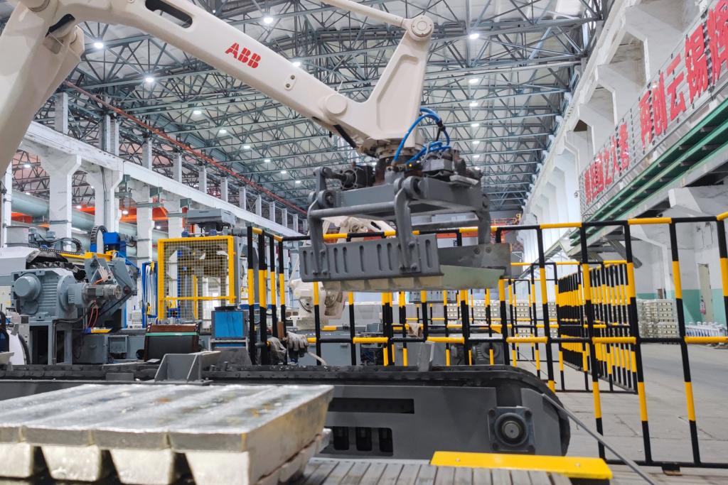7月26日,錫冶煉2022年度檢修工作隨著頂吹爐順利點(diǎn)火、升溫投料后,垛垛精錫在直線澆鑄機(jī)上綻放出光彩,實(shí)現(xiàn)成功復(fù)產(chǎn),標(biāo)志著歷時(shí)39天的停產(chǎn)檢修工作圓滿完成,比原計(jì)劃45天提前6天完成任務(wù)。